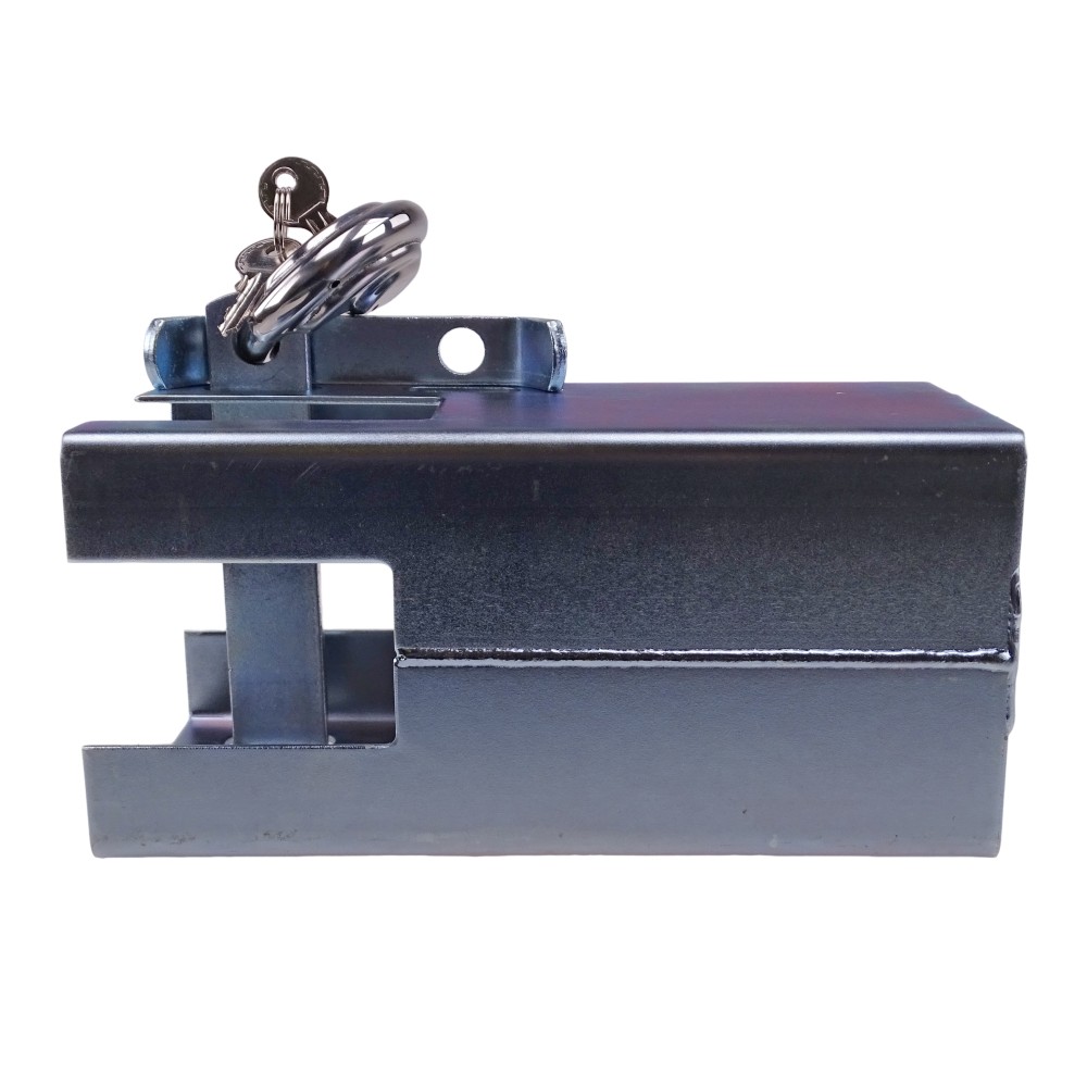 Låsehuset har to indsætningsmuligheder for bolten, hvilket sikrer fleksibel håndtering og sikker låsning. Med udvendige mål på ca. 110 x 110 x 232 mm og indvendige mål på ca. 104 x 104 x 230 mm er den velegnet til en lang række anhængertræk.