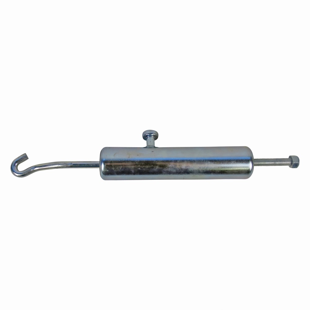 Spring cylinder with draw hook – side view showing cylindrical silver body and adjustment bolt for Knott TYP KR/KF13.