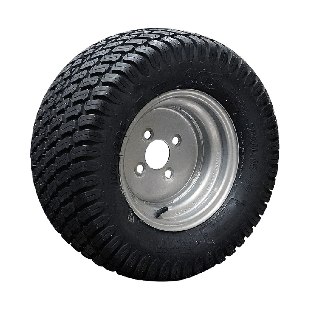 Cette roue complète BKT 20x10.00-10 avec profil LG-306 est une solution robuste pour les équipements d’entretien des jardins et des parcs. Elle combine un pneu gazon à faible usure avec une jante en acier gris robuste. La roue est conçue pour de faibles vitesses et de fortes charges et convient idéalement aux tondeuses autoportées, tracteurs de jardin, porte-outils et machines similaires, où la protection du sol et une traction fiable sont primordiales.