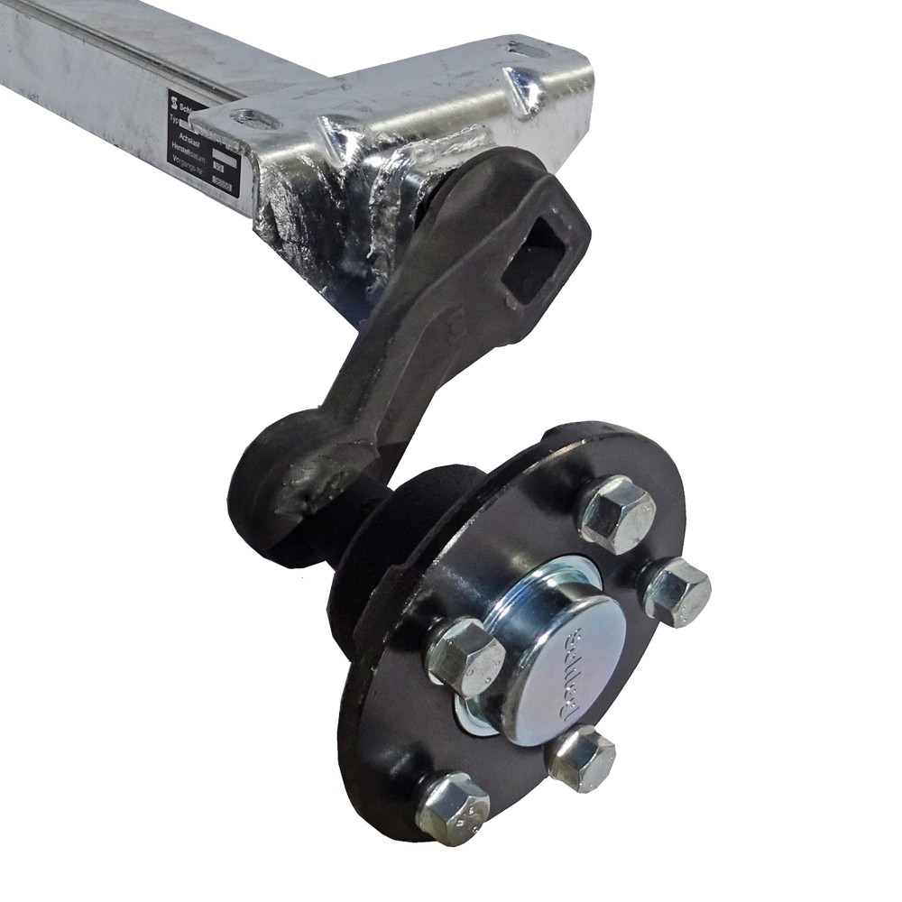 Återstående lager Schlegl 750kg släpvagnsaxel MB8 - 1100mm - 5x112 - lågt fäste - obromsad