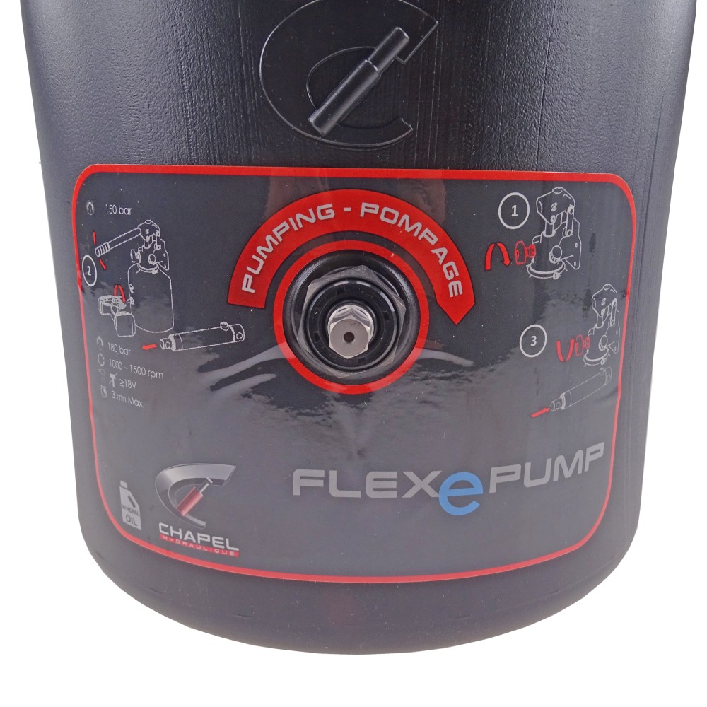 FLEXePUMP är en kombination av en kugghjulspump som drivs av en sladdlös skruvmejsel och en enkelverkande handpump. Båda pumparna kan användas oberoende av varandra.